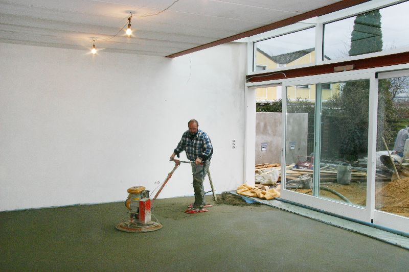 Die drehende Rüttelplatte glättet und verdichtet zugleich.