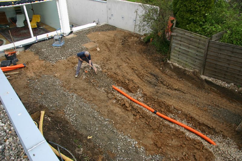 Drainage-Rohre leiten künftig das Wasser ab, welches sich bisher auf der undurchlässigen Lehmschicht staute.