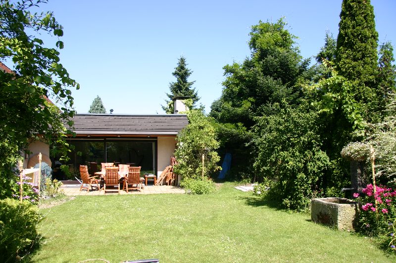 Gartenansicht des Wohnzimmeranbaus vor Beginn des Umbaus