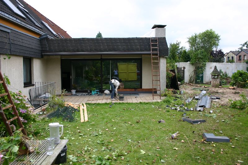 Die Bäume auf vier angrenzenden Grundstücken fallen mit freundlichem Einverständnis unserer Nachbarn.
