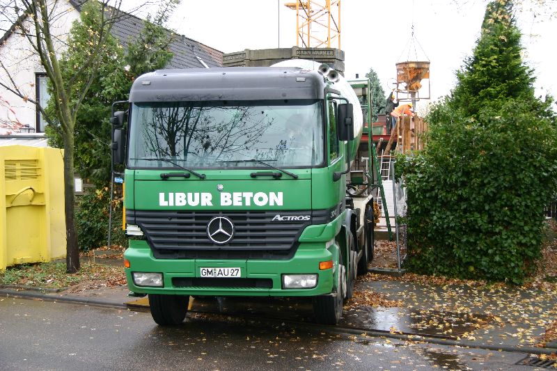 Der Beton für den Ringbalken wartet in der Einfahrt