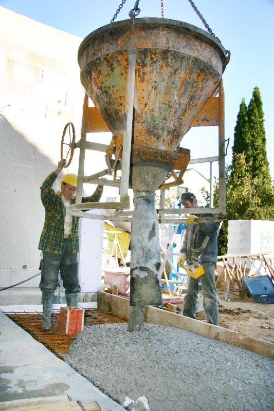 Die Verlängerung der Bodenplatte vor dem Wohnzimmer wird gegossen.